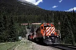 The Big Hill on the Canadian Pacific Railway main line in British Columbia, Canada, was the most difficult piece of railway track on the CPR's route.[1] It was in the rugged Canadian Rockies west of the Continental Divide of the Americas and Kicking Horse Pass. Even though the Big Hill was replaced by the Spiral Tunnels in 1909, the area has long been a challenge to the operation of trains and remains so to this day.[2]