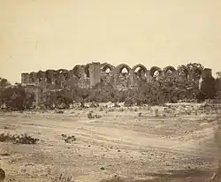 Two centuries later, in 1877, during the British rule, due to scarcity (famine conditions) Bijapur city was found in a desolate and deserted state that was compared to similarly placed ruined cities of Baalbek in Bekaa Valley of Lebanon or Pompeiopolis in Rome. The palaces and tombs in the fort were in ruins. Bijapur was like the city of the dead, for there was no water or food in the city.[8]