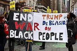 During his mayoral tenure, de Blasio's relationship with the New York City Police Department was called "strained",[136] "combative",[137] and "frosty".[138]