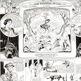 - The feature was a much-beloved fixture of the Sunday Dispatch, both for its graphic inventiveness (the mastheads alone are worth the price of admission) and all the local color. Ireland seemingly knew everyone and everything in Columbus, and he lovingly lampooned it all each Sunday. The pages were always jam-packed... filled to the brim with local happenings, oddball news and personal anecdotes... The creator took a vacation every summer, during which substitutes would be called upon to keep the Show rolling, as it were... Billy Ireland was noted for his kindnesses to aspiring cartoonists. He was Dudley Fisher's mentor in the 1910s, and later gave Milton Caniff his first pro cartooning job at the Dispatch. Noel Sickles also acknowledges a great debt to Ireland for giving him early encouragement. After Ireland's death The Passing Show was continued by Harry Keys, who renamed it We Folks in 1938. Others who took a crack at the Ireland legacy page were Bob Vittur and Myron Dixon. As We Folks, the feature ran until at least 1944.[1]