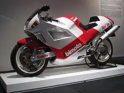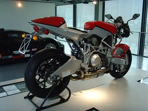 An initial model was powered by a Yamaha FZ750 engine;[11] subsequently Honda V-4 and then Ducati V-Twin motors were adopted; in the wake of the takeover of Bimota by Kawasaki in 2019, since 2020 they have used motors by Kawasaki.[1]