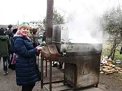 Making birch syrup is more difficult than making maple syrup, requiring about 100–150 liters of sap to produce one liter of syrup—more than twice the sap needed for maple syrup.[2]