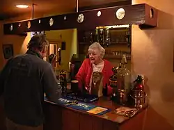 The village pub, the Gate was run by Ruby D'Arcy[7] from 1968 to 2012 and many a schoolboy from Uppingham School (Stephen Fry, Rick Stein, Jonathan Agnew, and Johnny Vaughan among them) supposedly slipped across the fields from Uppingham to relax, away from their masters’ watchful gaze. Ruby's husband Peter D'Arcy was spoken of with affection and when he died, 1,500 mourners attended his funeral in Bisbrooke church. The pub did not re-open after Ruby D'Arcy's death and has been converted as a private house.