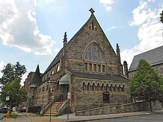 Bishop Cummins REC is one of the oldest congregations in the Reformed Episcopal Church, which was founded by George David Cummins in December 1873. Cummins toured the northeast, establishing churches in New York, Montreal, Chicago, Philadelphia and Ottawa before returning to Baltimore. In 1874, he led a group in holding services under the name Church of the Rock of Ages. The church incorporated in 1877 and began construction on a Gothic Revival church on Lafayette Square in 1878. Cummins died later that year, and the church was renamed in his honor.[2]