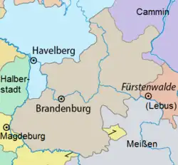 The diocese of Brandenburg existed between the 10th and 16th centuries. From the 12th century, its bishops also ruled the Hochstift Brandenburg.