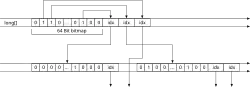 long bitMap = mem[nodeIdx]; long bitPos = 1L << value; // 6-bit-value if ((bitMap & bitPos) == 0) return false; // not found long childNodeIdx = mem[nodeIdx + 1 + Long.bitCount(bitMap & (bitPos - 1))]; The offset to find the index based on the current node index is the amount of least significant bits set in the bitmap before the target position plus one for the bitmap. The amount of least significant bits set can be calculated efficiently with constant time complexity using simple bit operations and a CTPOP (count population) operation that determines the number of set bits, which is available as Long.bitCount() in Java. CTPOP itself can be implemented quite efficiently using a "bit-hack" [2] and many modern CPUs even provide CTPOP as a dedicated instruction treated by compilers as intrinsic function.