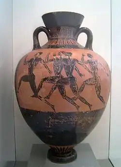 - ^ On the Panathenaic prize amphoras see John Boardman: Schwarzfigurige Vasen aus Athen, von Zabern, Mainz 1979, S. 180–183; Thomas Mannack: Griechische Vasenmalerei, Theiss, Stuttgart 2002, S. 113–117.