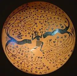 The first artist known by name is the polychrome vase painter Timonidas, who signed[9] a flask[10] and a pinax.[11] A second artist's name, Milonidas, also appears on a pinax.