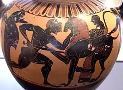 - ^ On Exekias see John Boardman: Schwarzfigurige Vasen aus Athen, von Zabern, Mainz 1979, S. 63f. and Thomas Mannack: Griechische Vasenmalerei, Theiss, Stuttgart 2002, S. 121–123.