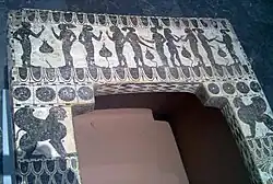 Acknowledging that vase painters in ancient Greece were regarded as craftsmen rather than artists, Exekias is nevertheless considered by today's art historians to be an accomplished artist whose work can be compared with "major" paintings (murals and panel paintings) of that period.[37] His contemporaries apparently recognized this as well. The Berlin Collection of Classical Antiquities in the Altes Museum contains the remnants of a series of his votive tablets. The complete series probably had 16 individual panels. Placing such an order with a potter and vase painter is likely to be unique in antiquity and is evidence of the high reputation of this artist. The tablets show grieving for a dead Athenian woman as well as her lying in state and being transported to a gravesite. Exekias conveys both the grief and the dignity of the figures. One special feature, for example, is that the leader of the funeral procession turns his face to look at the viewer directly, so to speak. The depiction of the horses is also unique; they have individual temperaments and are not reduced to their function as noble animals, as is otherwise customary on vases.[38]