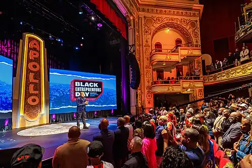 The second Black Entrepreneurs Day event took place at the Apollo Theater, in New York City and was broadcast live on October 14, 2021.[13][14][15] Guest speakers included Kevin Hart, Michael Strahan, Tyra Banks, and Rev Run.[8][13] The event also featured a musical performance from Khalid.[16][17] $250,000 in NAACP grants were awarded to Black-owned businesses at the event.[18][19]