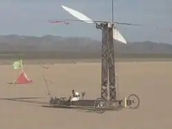Blackbird is an experimental wind-powered vehicle, built in 2010 to demonstrate that it is possible for such a vehicle to go directly downwind faster than the wind (sometimes abbreviated as DDWFTTW). Blackbird employs a rotor connected to the wheels and does not have a motor, battery, or flywheel.[1] It was constructed by Rick Cavallaro and John Borton of Sportvision, sponsored by Google and Joby Energy in association with the San Jose State University aeronautics department.