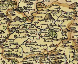 Blackburn Hundred depicted in John Speed's 1610 map of Lancashire