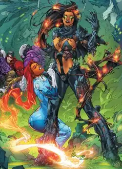 Blackfire (Komand'r) is a supervillain appearing in American comic books published by DC Comics.[1] She is the older sister and archenemy of Teen Titans member Koriand'r/Starfire and of lesser-known youngest sibling Crown Prince Ryand'r/Darkfire.[2]