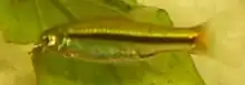 The blackline rasbora (Rasbora borapetensis) is a fish of the family Cyprinidae found in Asia in the Mekong, Chao Phraya, and Mae Klong basins, and also the northern Malay Peninsula. In the aquarium trade, it is known by a variety of other names, including red-tailed rasbora, bora bora rasbora, and brilliant rasbora.[2]