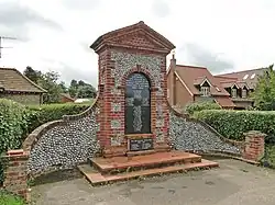 Blakeney's war memorial is a brick and pebble arch with two granite plaques, one commemorating the First World War and another for the Second World War. The First World War memorial lists the following 31 names:[18]