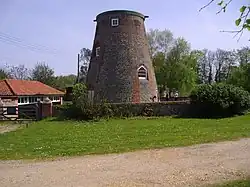 The towermill stands over four storeys and is 32 feet tall.[4] In its operational days the mill was powered with common sails and a tailpole. The configuration powered two pairs of grindstones. The doors and windows are unusual in that they have Gothic arches, probably installed during rebuilding work in the 1800s. Also during this period four patent double-shuttered sails were installed. These were struck by rack and pinion via a chain pole and drove three pairs of stones. Photographs from that period show that the windmill had one pair of sails had seven bays of three shutters and the other pair had eight bays of three shutters. The top of the mill was capped with a dome with a finial. This capping was boarded horizontally and it had a sixteen-sided petticoat. There was also a gallery and an eight-bladed fan.[4]