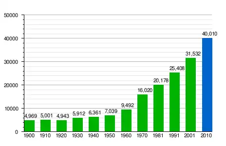 | Legal population (1900-1991) or Resident population (2001) according to the population census published by the Instituto Nacional de Estadística. Population according to the municipal register of 2010 published by the Instituto Nacional de Estadística. |