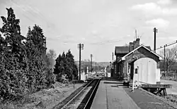 A single siding equipped with a 2-ton yard crane handled goods traffic which consisted of watercress and English elm boles for trawling nets made locally in Longwick.[7] Figures from 1933 show that 2,853 long tons (2,899 t) of goods were sent from the station, whilst 402 long tons (408 t) tons of goods were received. In the same period 5,338 passenger tickets were issued and 6,529 parcels forwarded.[9]