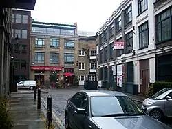Bleeding Heart Yard is a cobbled courtyard off Greville Street in the Holborn area of the London Borough of Camden. The courtyard is probably named after a 16th-century inn sign dating back to the Reformation that was displayed on a pub called the Bleeding Heart in nearby Charles Street. The inn sign showed the heart of the Virgin Mary pierced by five swords.[1][2]