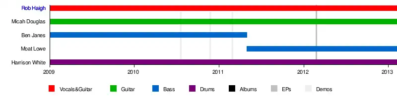 The group formed in 2009. After a number of lineup changes the band stabilised with a lineup of Robert Haigh on vocals and guitar, Harrison White on drums, Micah Douglas on guitar and Ben Janes on bass (the latter two found on the website joinmyband.co.uk[2]) and began recording and performing. From 2009 to 2011 the band released several demos, including Secrets of Eternity, Ghosts of the Past and Oedipus Tyrannus.
