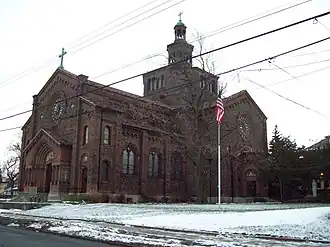 - ^ "Cultural Resource Information System (CRIS)". New York State Office of Parks, Recreation and Historic Preservation. Archived from the original (Searchable database) on 2019-04-04. Retrieved 2016-07-01. Note: This includes Claire L. Ross (May 1979). "National Register of Historic Places Registration Form: Blessed Trinity Roman Catholic Church Buildings" (PDF). Retrieved 2016-07-01. and Accompanying eight photographs