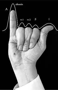 - ^ Medina-De la Garza CE, García-Hernández M, Castro-Corona MA. Visual mnemonics for serum protein electrophoresis https://www.tandfonline.com/doi/full/10.3402/meo.v18i0.22585