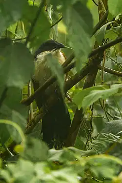 The blue-headed coucal (Centropus monachus) is a species of cuckoo in the family Cuculidae. It is native to tropical central Africa where its typical habitat is swamps, river banks, forest edges and generally wet locations. It is a common bird with a wide range, and the International Union for Conservation of Nature has rated its conservation status as being of "least concern".[1]