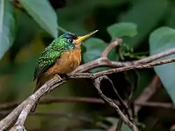 The blue-necked jacamar or blue-cheeked jacamar (Galbula cyanicollis) is a species of bird in the family Galbulidae. It is found in Brazil, Bolivia, and Peru.[2][3]