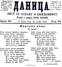 - ^ Jovanović, Jovan (20 July 1865). "Народна имна". Danica (20). Novi Sad: 1.
