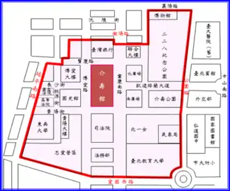 - ^ 臺北市博愛警備管制區範圍示意圖 (PDF) (in Chinese). Archived (PDF) from the original on 2021-10-08. Retrieved 2021-10-08 – via laws.taipei.gov.tw.