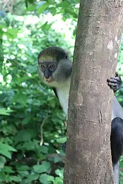 The Boabeng-Fiema Monkey Wildlife Sanctuary is found at Boaben and Fiema, twin communities 22 kilometers away from the Nkoranza North District of the Bono East region, Ghana.[1] The 4.4 kilometer square (km2) forest, believed to have been created in the 1970s, houses many trees, birds, reptiles, deer and monkeys, two of which are the Geoffrey's pied colobus and Campbell mona monkey.[2][3]