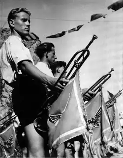 The Kuratorium was established in 1941 partly on the initiative of Colonel Emanuel Moravec to provide athletic and cultural activities for Czech youth between the ages of ten and 18.[1][2] Many Kuratorium leaders were functionaries or supporters of the fascist Vlajka and Livia Rothkirchen has characterized its programming as an effort at Nazi indoctrination.[3][4] #