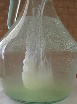 The cold humidity at night should slightly vary the density of albumin which, similar to water, should increase slightly, therefore falling slowly on the bottom of the glass container. Likewise, the bottom, in contact with the heat of the ground on which it rests, should raise the water molecules upwards, by small convective movements, and create the effect of the veils of egg white.[6][7]
