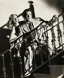 Back at Universal, Cummings starred in the Alfred Hitchcock spy thriller Saboteur (1942), made at Universal, with Priscilla Lane and Norman Lloyd. He played Barry Kane, an aircraft worker wrongfully accused of espionage, trying to clear his name.[65] In December 1941, John Chapman said Cummings was among "the most sought-after leading men in town" and was one of his "stars for 1942".[66] Filmink wrote "Few male actors had a hot streak like Robert Cummings from 1941 to 1942: The Devil and Miss Jones, It Started with Eve, Kings Row and Saboteur are all stone-cold classics, and he made crucial contributions to all."[5]