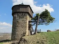 A tourist destination is a ruin of the Hartenštejn Castle on a hill near the town. It was built in the 1460s–1470s and belonged to the best defense systems in Bohemia, but already in 1573, it was abandoned.[8] The reconstructed tower of Hartenštejn Castle now serves as an observation tower.[9]