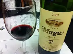 Bodegas Muga is a Spanish winery based in Haro, in the Rioja Alta region. The estate was created in 1932 by Isaac Muga Martínez and his wife, Aurora Caño, and currently produces several red, rosé and white wines from Tempranillo, Garnacha, Mazuelo, Malvasia and Viura grapes.[1]