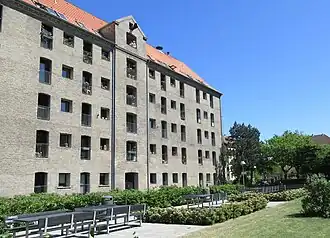 Bodenhoffs Plads was as No. 175 B sold to Joseph Hambro and was from then on known as Hambros Plads.[3] He established a rice mill and a pig farm at the site. The rice huller was from 1930 powered by Denmark's first steam engine. The chaft from the rice huller was used as feed for the pigs. He then expanded the complex with Denmark's first canned food factory which made it possible to sell the meat to the many ships in the area. He also established a bakery which sold bread to the ships.[4]