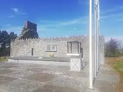 In October 1969, the Tones' tomb was bombed and damaged by the Ulster loyalist UVF.[10] In June 1975, the same group sought to derail a train at near Sallins carrying 250 Official IRA supporters to the annual commemoration, and murdered a witness to their attempt, a local farm labourer, Christopher Phelan.[11][12] In 2013, the Tone's headstone was replaced with a tomb of Irish limestone and, overlooking it on a church wall, a bronze relief portraying Tone in profile next to an excerpt from Pearse's 1915 eulogy.[10]