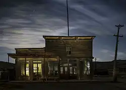 Bodie was first described as a "ghost town" in 1915.[33] In a time when auto travel was on the rise, many travelers reached Bodie via automobiles. The San Francisco Chronicle published an article in 1919 to dispute the "ghost town" label.[34]