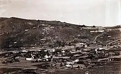 Bodie began as a mining camp of little note following the discovery of gold in 1859 by a group of prospectors, including W. S. Bodey.[6][10][11] Bodey died in a blizzard the following November while making a supply trip to Monoville (near present-day Mono City), never able to see the rise of the town that was named after him.[10] According to area pioneer Judge J. G. McClinton, the district's name had been "Bodey," "Body," and a few other orthographic variations. After a painter in the nearby boomtown of Aurora, lettered a sign "Bodie Stables," it was then standardized to "Bodie."[12][13]