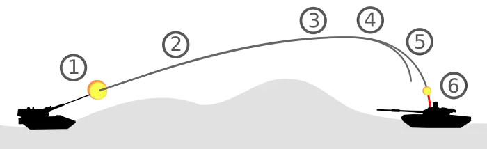 2: The round flies on a ballistic arc, with a range of up to 35 kilometres (21.7 mi).