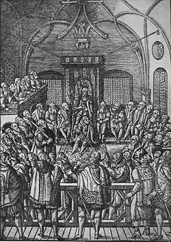 After the defeat of the Bohemian estates in the Battle of White Mountain, Ferdinand II would proclaim in 1627 for Bohemia and 1628 for Moravia the Renewed Regional Code, in which the monopoly position of the states was abolished in favour of the provincial government. Despite these limitations, the Diet and its committees, like the Diets in Austria, remained an effective means of political co-decision. In their meetings, usually once a year, the estates could, through the amount of taxes, resist the lords of the land. All direct and indirect taxes, with the exception of the collection of customs duties, remained within the competence of the estates.[3] The Diet was thus a relic of the estate power rather than an absolutist instrument and even by the 1830s, the diet was again a base for organizing the opposition and a place of political friction.[4]