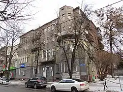 The Ivan Boiko House (Ukrainian: Будинок Івана Бойка) is a architectural and urban planning monument in the Ukrainian Art Nouveau style, located in the center of Kharkiv at 44 Myronosytska Street. The building was constructed between 1912 and 1914 as a revenue house (apartment building for rent) based on a design by architects Serhii Tymoshenko, Pavlo Shyrshov, and Pavlo Sokolov. Renowned artists Mykola Samokysh and Serhii Vasylkivsky decorated the stairwells with murals and panels.[1][2]