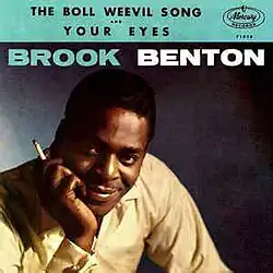 The 1961 recording by American R&B singer Brook Benton was released as "The Boll Weevil Song" in an adaptation by Benton and frequent musical collaborator Clyde Otis. Considered a novelty record, it was produced by Shelby Singleton and appeared on an album called The Boll Weevil Song and 11 Other Great Hits.