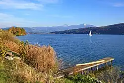 In the European Middle Ages, the two settlements named Unterbollingen and Oberbollingen are mentioned as part of the later Herrschaft Rapperswil of the Counts of Rapperswil. The earliest document sealed at the Rapperswil Castle was related to the donation of the church of Unterbollingen to the Rüti Abbey, and also mentions among others a civitas of the town of Rapperswil as witnesses of Count Rudolf von Rapperswil in 1229.[3] On the peninsula at Oberbollingen, a St. Nicholas Chapel is mentioned, where around 1229 a small Cistercian nunnery, later Premonstratensian convent associated with the Rüti Abbey was established by the Counts of Rapperswil; in 1267 it was united with the nearby Mariazell Wurmsbach Abbey. In 1519 a new church in honor of St. Pancras was inaugurated in Unterbollingen. After the Reformation in Zürich the church was acquired by the city of Rapperswil to be united with the Heiliggeistspital, but since 1871 it is a parish church for its own.