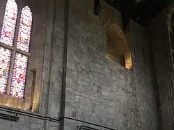 The original function of the alcove remains speculative. There may have been some access from the Prior's quarters at the north end of the west range, but according to Professor Hamilton Thompson[17] this ‘would have served no obvious purpose other than ventilation’.