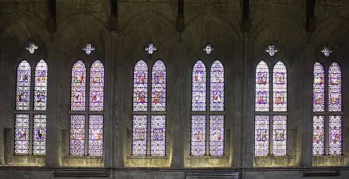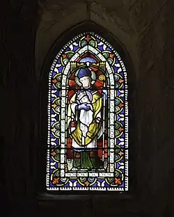 Although the lower panels of the windows in the north aisle contain Victorian stained glass, their upper panels contain effigies of a king and a queen in 14th-century coloured glass. It has been suggested that the king might be Edward II, Edward III or Henry VI.[18]