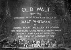 Although Walt Whitman had never visited Bon Echo, Flora admired Whitman's work so much that she commissioned a piece of his poetry to be chiseled into the face of the rock in foot-tall lettering, where it can still be seen.[7] The work was performed by two Aberdeen, Scotland stonemasons and took all of the summer of 1919 to complete.