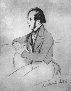 Felix Mendelssohn, 1842, pencil drawing, J-J Bonaventure Laurens